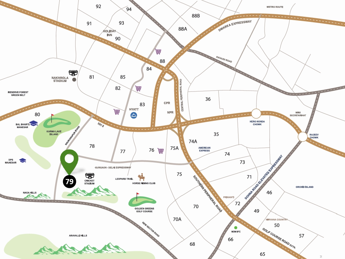 IMT Manesar with quick access to Dwarka Expressway and SPR, the project blends modern